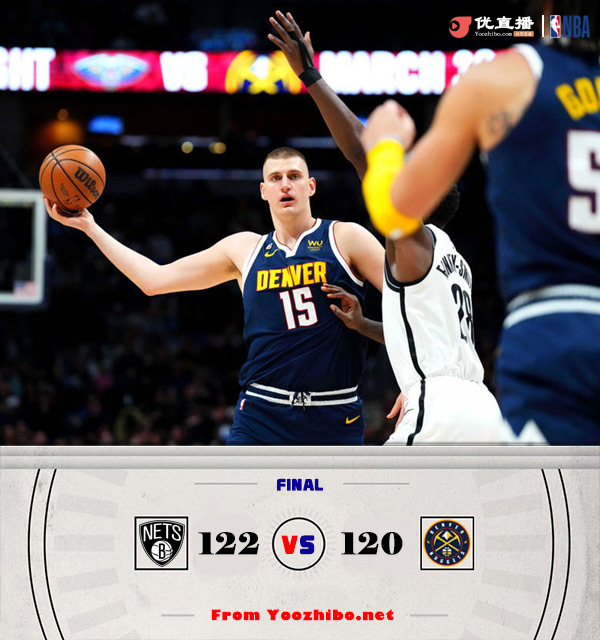 24直播网3月13日讯 NBA常规赛,掘金主场迎战篮网。掘金高居西部第一,篮网排在东部第五。比赛开始,双方开场大打对攻,比分交替领先,篮网持续发力将分差拉开到两位数,但约基奇表现非常全面,得分、篮板、助攻无所不能,掘金不断蚕食分差并完成反超,半场战罢掘金69-61领先。易边再战,篮网奋力反击打出19-6的攻击波反超比分,掘金命中率骤降,篮网多点开花再度取得10分以上领先,此后双方围绕10分的分差展开拉锯战,掘金持续发力迫近比分,关键时刻掘金挑战成功,布里奇斯两罚一中,约基奇绝杀不中,掘金就此告负。最终,篮网122-120险胜掘金。