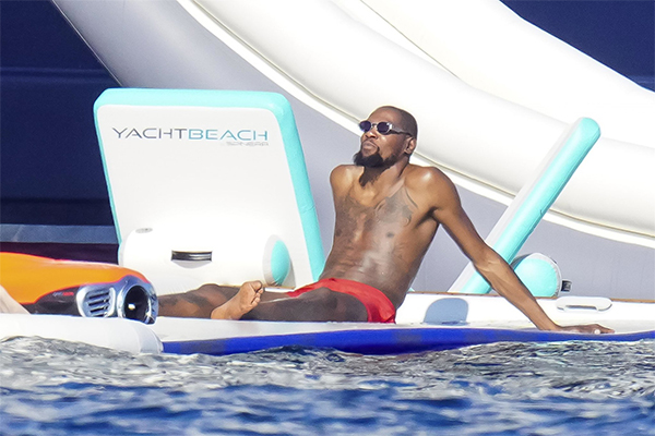 美国男篮夺冠之后,杜兰特和布克在圣特罗佩享受生活,他们在游艇上玩嗨了,杜兰特戴着墨镜晒日光浴以及玩滑梯,布克还与性感美女闲聊。