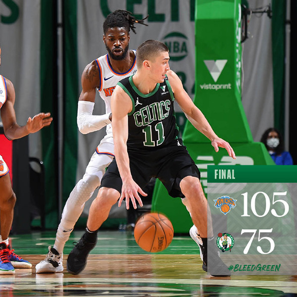 24直播网1月18日讯 NBA常规赛,凯尔特人坐镇主场迎战尼克斯。此役,绿军主将肯巴-沃克迎来赛季首秀,塔图姆等人缺阵。首节比赛,杰伦-布朗高效拿下11分,但绿军其他球员合计仅得6分,而尼克斯双星兰德尔和巴雷特合砍19分10板,带队以28-17领先。第二节,尼克斯新秀奎克利表现出色,他连连得分帮助尼克斯打出进攻高潮,一举将分差拉大到15分。下半场开局,尼克斯再度轰出攻击波,把领先优势扩大到20+!而刚刚复出的沃克一度因伤返回更衣室,好在没有大碍,本场未继续出战。末节比赛沦为垃圾时间,尼克斯最终在客场以105-75大胜凯尔特人,结束五连败,并终结对手的五连胜。