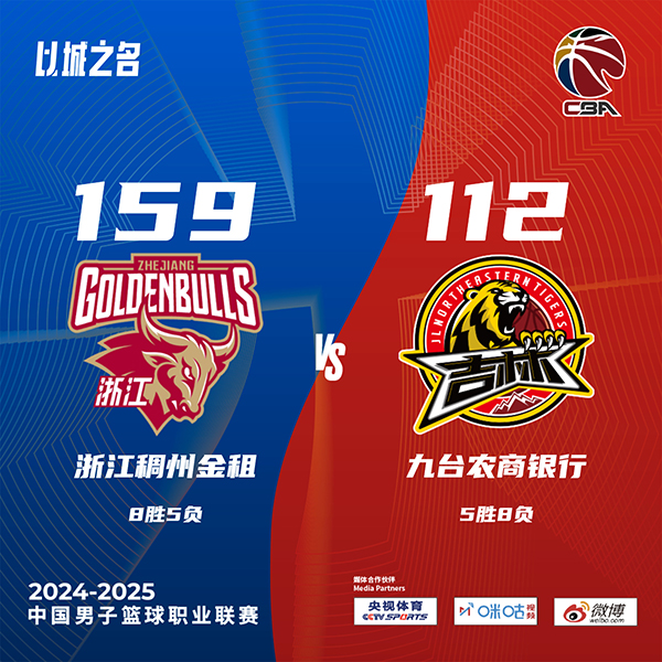 24直播网讯北京时间12月4日讯 CBA常规赛,浙江对阵吉林。浙江7胜5负,吉林5胜7负。一开场,双方大打对攻,吉林多点开花,浙江里突外投给出回应,次节吉林突然哑火,浙江火力全开轰出22-0的进攻狂潮,吉林进攻终于回暖,但浙江持续发力,单节以50-20净胜30分,半场战罢浙江84-55领先吉林。下半场,浙江延续火力,吉林防守端依旧形同虚设,分差一度拉开到40分以上,末节分差一度接近50分,吉林苦苦追赶稍稍缩小分差,最终,浙江159-112狂胜吉林47分。
