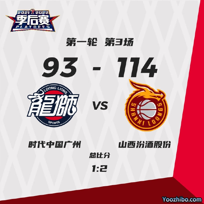 末节,祝铭震助攻利夫灌篮得分,随后利夫外线三分连中两记。西蒙斯上篮强杀内线打成2+1,郑准六犯离场。西蒙斯外线三分再中锁定胜局,全场比赛结束,广州93-114山西。