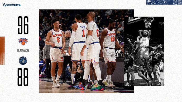24直播网12月29日讯 NBA常规赛继续进行,森林狼坐镇主场迎战尼克斯,两队上一场比赛都获胜,本场森林狼三大核心唐斯,拉塞尔,爱德华兹均缺席。首节两队你来我往,森林狼进攻重点放在禁区,尼克斯则单节命中四记三分,以更高的进攻效率占据场上优势。次节一上来,格莱姆斯两记三分带领尼克斯打出进攻高潮拉开比分,但是随后森林狼加大防守强度,尼克斯逐渐陷入得分荒,比斯利则是找到手感,带领森林狼全队连突带投,打出19-5,半场结束仅落后三分。第三节森林狼一度反超比分,但尼克斯迅速稳住局面,连中三分再度拉开比分,保持两位数分差进入第四节。末节两队陷入拉锯战,尼克斯艰难保持领先优势,森林狼无力反超,88-96主场吞下败仗。