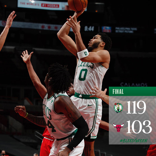 24直播网1月26日讯 NBA常规赛,公牛今日迎战凯尔特人,前者上场比赛输给湖人排在东部第十位,而后者则是战胜了奇才暂列东部第三。易边再战,公牛开始发起反扑,分差在末节一度回到个位数,关键时刻塔图姆站了出来连续得分帮助球队稳住局势,比赛此后再无波澜,最终凯尔特人轻取公牛,取得连胜。