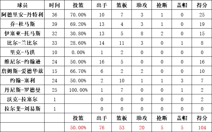 湖人队统计: