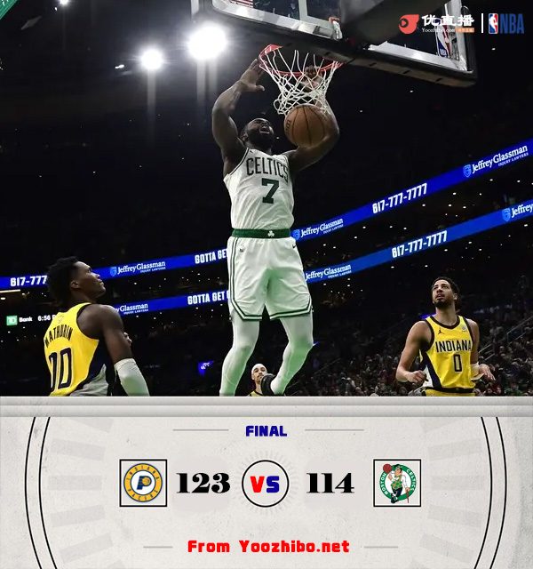 24直播网讯北京时间12月30日讯 NBA常规赛,凯尔特人今日再战步行者,两队上场比赛刚刚完成交手,凯尔特人大胜37分,也是送给后者两连败,此役霍勒迪缺战。比赛上来,步行者就率先进入状态打出6-0的开局,分差也是拉开到了两位数,不过凯尔特人及时调整在节末完成反超,次节步行者重整旗鼓火力全开,单节轰下38分,半场结束时凯尔特人落后7分;下半场回来,两队展开对攻,塔图姆也终于找到感觉单节拿到12分,不过分差一直保持在十分左右,末节凯尔特人虽然有追分的势头,但步行者及时给出了回应一波13-0重新拉开分差,比赛此后再无波澜,最终步行者复仇凯尔特人结束连败。