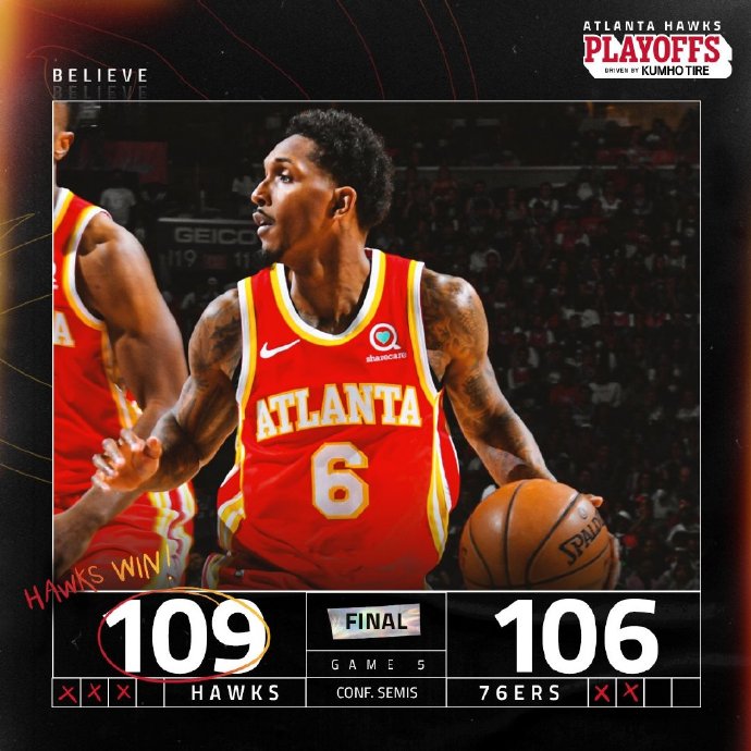 老鹰(3-2):特雷-杨39分7助3断、科林斯19分11板2帽、卡佩拉6分8板2断、加里纳利16分8板、路威15分2板3助2断