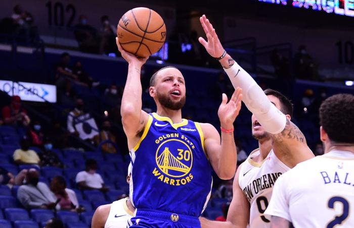 NBA公布了4月份东西部月度最佳球员,勇士核心库里和尼克斯大前锋兰德尔当选。在过去的4月,库里率领勇士取得8胜7负的战绩,场均可以拿到37.3分+6.1篮板+4.6助攻,投篮命中率为51.8%,三分球命中率为46.6%,罚球命中率为90.8%,他是NBA历史上第一位单月35+,同时达成50+40+90标准的球员。4月份库里累计命中96记三分,刷新NBA纪录。这是库里生涯第8次当选月最佳,勇士队史累计12人次当选过月最佳,库里自己占8次。