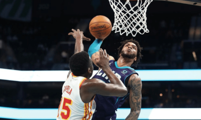 24直播网讯 今天NBA常规赛黄蜂和公牛展开对决,此役运动能力炸裂的黄蜂悍将布里奇斯再度贡献精彩时刻,他在比赛中隔扣了公牛中锋武切维奇,相当的霸气。联想到近期的布里奇斯隔扣不断,所以说他是本赛季的隔扣代言人,超越隔扣渡边雄太的爱德华兹并不为过。