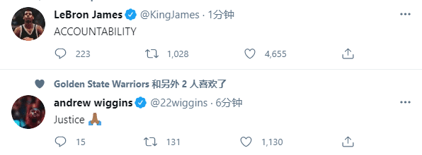 湖人当家球星詹姆斯第一时间发声:问责制。