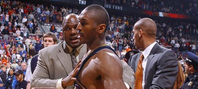 24直播网3月20日讯2004年11月19日 ,活塞球迷约翰和威廉姆两人结伴来到了活塞主场观看比赛,或许在赛前,两人并没有意识到灾难的乌云已经在自己的头上笼罩,当然它也可能是金钱的祥云。