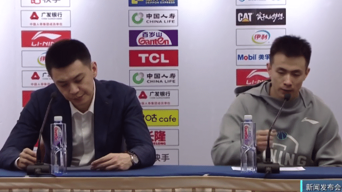 辽篮将帅在等了好一会才出现在发布会,杨鸣先到场,他示意带错人了,换人,让记者稍微等一下,随后杨鸣一人在现场愣神和看赛后数据统计。