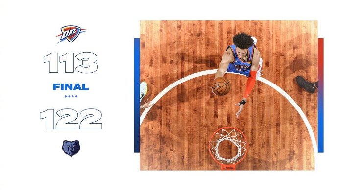 灰熊122-113力克雷霆 亚历山大复出22+6 莫兰特15+11+12