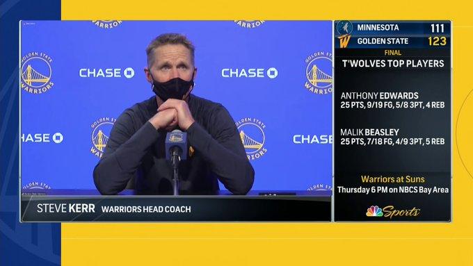 乌布雷谈到交易流言忍不住爆粗口“我是勇士球员,让我们赢下这场该死的比赛。”随后他感谢科尔“能在生涯饱受争议的时候听到教练的安慰真的很幸运。因为你想保持状态,你只想好好比赛,教练经历过这样的时刻,我们球员也经历过。所以他能跟我谈这个事是很棒的,这不会影响我”