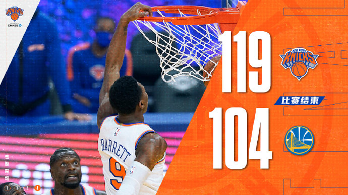 尼克斯119-104战胜勇士 巴雷特28+5 库里30分