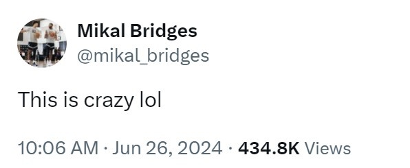 布里奇斯本人发推写道:这很疯狂哈哈哈。