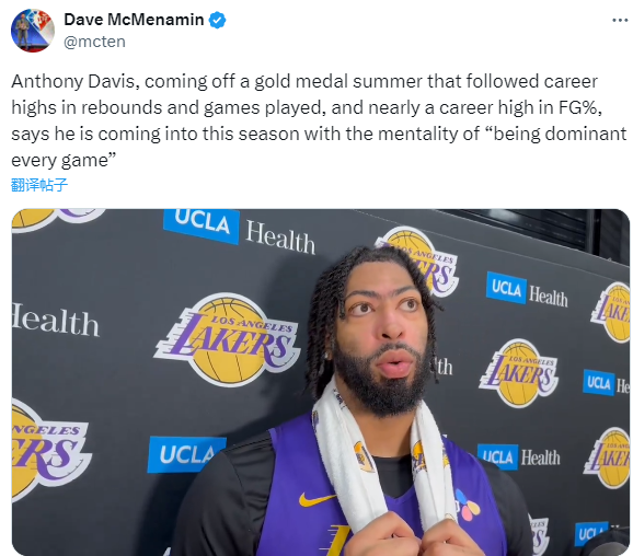湖人新赛季15+3阵容已经确定,奥利瓦里凭借自己的表现赢得了一份双向合同;今天湖人全队训练结束后,浓眉谈到统治力时表示:每次进攻都充满侵略性,每场比赛都占据主导地位。做好我的工作,尽我所能,做球队需要我做的任何事情, 作为这支球队的领袖,我要带领球队打比赛,不惜一切代价,我会肩负起责任,确保自己比去年打得更好。