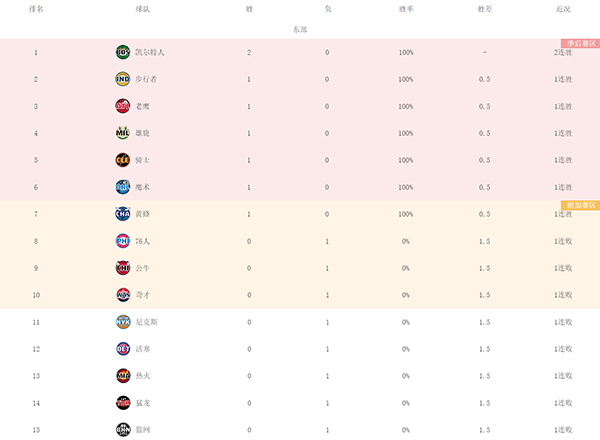 24直播网讯北京时间10月25日,NBA的30支球队,已经全部完成在常规赛的亮相,老鹰雄鹿湖人等队收获开门红,卫冕冠军凯尔特人成为第一支取得本赛季常规赛连胜的队伍。森林狼惊险击败国王,拒绝连败。接下来我们一起来看看NBA东部和西部的最新排名: