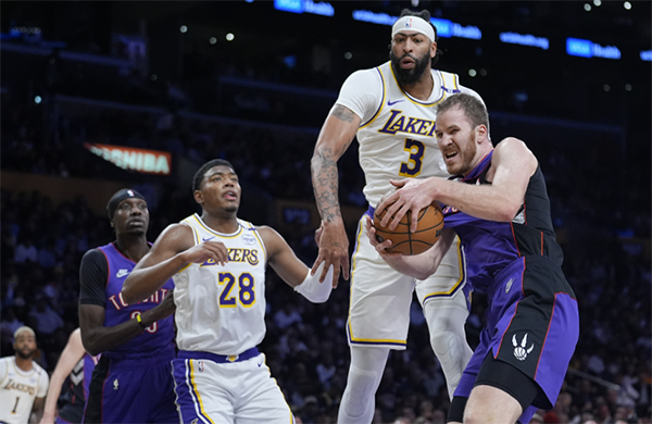 24直播网讯北京时间11月11日,NBA常规赛湖人主场击败猛龙,浓眉因左眼受伤提前退赛,詹姆斯全场14投6中拿到19分16助攻10篮板1抢断,又拿到三双并且带队取胜;詹姆斯拿到生涯第115次三双,送出制胜助攻终结悬念,提前打卡下班。