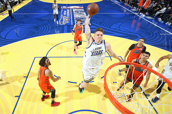 全明星新秀赛半决赛第一场,湖人新星克内克特的表现十分出色,开场命中三分,空切上篮,帮助穆林队15-5早早领先10分打停比赛,面对哈达威队的反扑,克内克特持球杀到禁区暴扣点燃球馆;决胜时刻,卡斯尔制胜一击拿下比赛,最终穆林队40-34淘汰哈达威队。