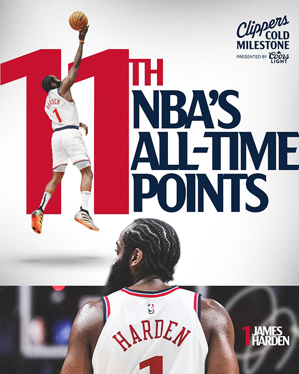 最后再次恭喜哈登超越名宿,独享历史得分榜第11位!