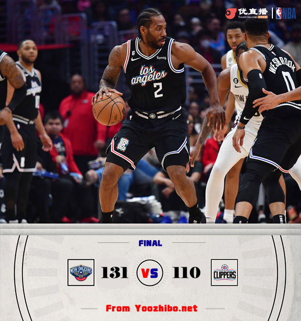 24直播网3月26日讯 NBA常规赛继续进行,快船主场迎战鹈鹕,快船目前39胜35负已经升至西部第4位,而鹈鹕则是36胜37负排在西部第9位。比赛开始,鹈鹕就迅速进入进攻状态,墨菲单节4记三分,英格拉姆得分的同时还能串联起球队的进攻,鹈鹕迅速建立起双位数领先,而小卡手感一般,鹈鹕外线万箭齐发打出一波10-2小高潮一度拉开近20分的领先,好在巴图姆和戈登两位老将通过三分球及时止血。下半场,鹈鹕进攻端继续发力,英格拉姆和墨菲继续保持火热手感,小卡争抢地板球疑似受伤再未出战,快船也逐渐无心恋战,分差也来到20分以上,卢指导索性直接换上替补练兵,最终鹈鹕131-110大胜快船,取4连胜。