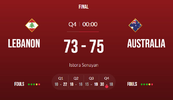 单节比分:10-22、18-16、15-19和30-18(黎巴嫩在前)
