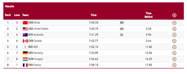 第三棒张雨霏入水!澳大利亚选手威尔逊在100米的地方抄到了第一,但在最后50米,张雨霏再次成功超越威尔逊,中国队5分45秒03又排名第一!