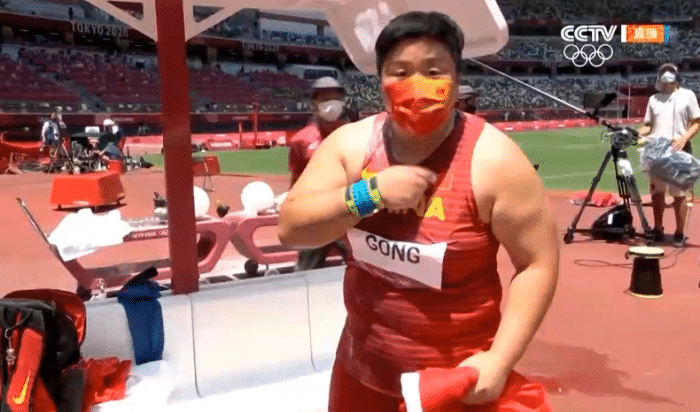 32岁巩立姣全场领先,两次投出20米以上的成绩——第五投20米53和第六投20米58,投出个人最好的成绩,全场压制对手,毫无悬念地夺得女子铅球金牌;第五投之后,巩立姣在比赛现场露出发狠的表情,更是高呼:中国牛!