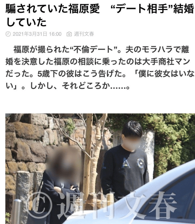 日媒《周刊文春》登出付费内容的预告版本,内容也已经足够劲爆。主要内容是:第一,福原爱约会男子已婚。第二,该男子否认与福原爱有不正当关系。第三,该男子一开始欺骗福原爱自己未婚,福原爱在风波爆出后才知晓。另外,《周刊文春》还将详细报道该男子与福原爱的共同经历。