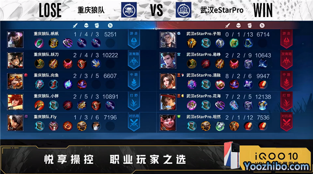 开局重庆狼队公孙离中路抢线,39秒重庆狼队反掉敌方蓝BUFF。58秒武汉eStar反掉蓝BUFF,重庆狼队击杀曜拿到一血。3分27秒武汉eStar发育路击杀公孙离。3分40秒武汉eStar拿下暴君。3分58秒武汉eStar中路击杀干将莫邪。4分16秒武汉eStar中路击杀太乙真人。5分53秒对抗路团战双方2换2。7分15秒重庆狼队摧毁敌方中路外塔。7分57秒对抗路团战武汉eStar打出0换2。8分47秒武汉eStar野区击杀太乙真人。9分57秒武汉eStar野区击杀太乙真人。10分15秒武汉eStar拿下暗影主宰。10分25秒野区团战武汉eStar打出0换3。11分26秒高地团战武汉eStar打出1换5。11分37秒武汉eStarPro摧毁敌方水晶拿下比赛。