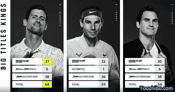 最后,还有哪些决定史上最佳的记录?但这一切都与大满贯有关吗?德约科维奇赢得了最多的大师赛冠军,他是世界上累积世界第一周数最多的球员。纳达尔是三人中唯一一个在奥运会上获得单打金牌的人。费德勒保持着ATP总决赛的冠军记录,他也是三人中获得ATP冠军最多的人。