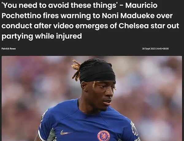 24直播网10月01日讯 莫里西奥-波切蒂诺向切尔西边锋诺尼-马杜埃克发出警告,有视频显示他在受伤的情况下仍参加派对。