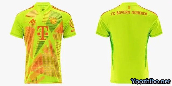 2024-2025赛季拜仁主场守门员球衣则采用荧光红和荧光绿的醒目设计。