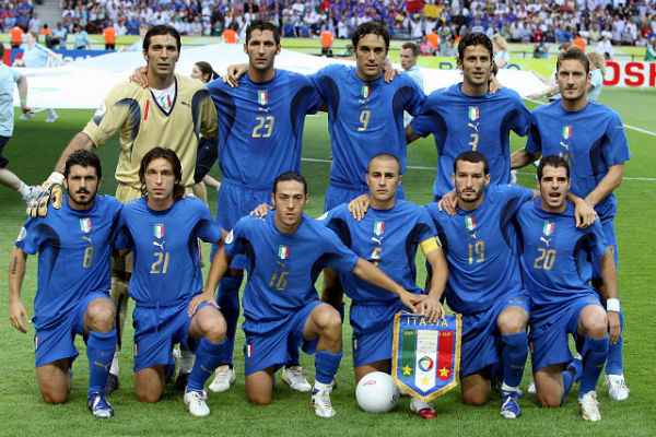 意大利阵容:门将:12-托尔多,后卫:3-马尔蒂尼,15-尤利亚诺 13-内斯塔,5-卡纳瓦罗 11-佩索托,14-迪比亚吉奥 4-阿尔贝蒂尼 18-菲奥蕾 20-托蒂 21-德尔维奇奥