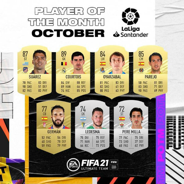 近日,西甲官方公布了10月的最佳球员后补,其中