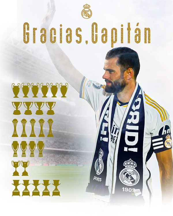 24直播网讯北京时间6月25日,西甲豪门皇家马德里官方宣布,34岁的队长纳乔在今夏合同到期后以自由身告别球队,为其23年的皇马生涯画上句号。据悉,纳乔下赛季将加盟沙特联升班马球队胡拜尔库迪西亚。