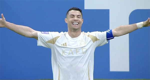 下半场刚开场C罗便在边路接到右路下底传中后,甩头攻门得手,帮助利雅得胜利打破僵局取得领先。