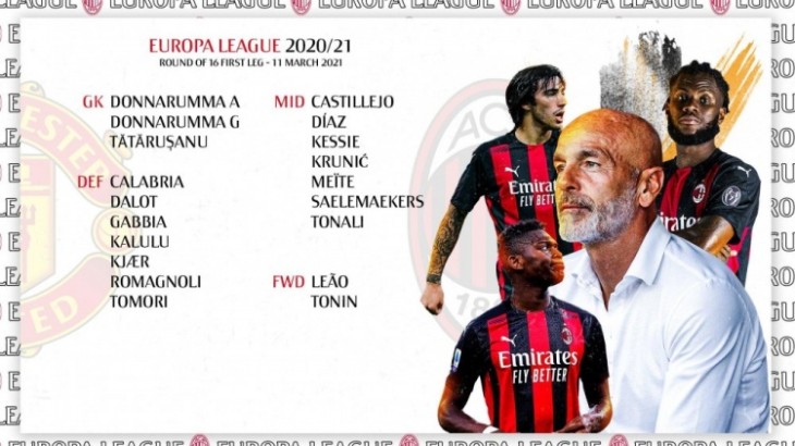 24直播网讯 北京时间3月10日讯 AC米兰公布了欧联杯对阵曼联的大名单。伊布、特奥、雷比奇、曼朱基奇以及恰尔汉奥卢等人因伤无缘,锋线则由莱奥与20岁小将托宁组成。
