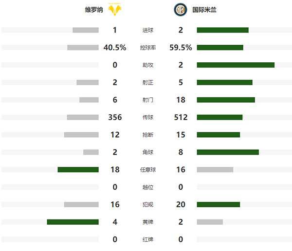 查看:维罗纳vs国际米兰 全场录像技术统计: