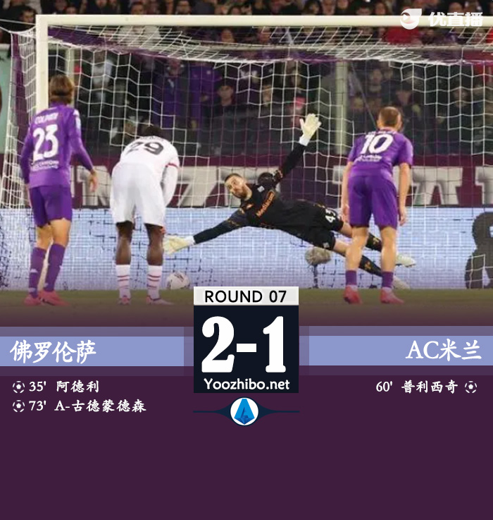 最终米兰1-2不敌佛罗伦萨,终结了联赛三连胜的势头,各赛事两连败。