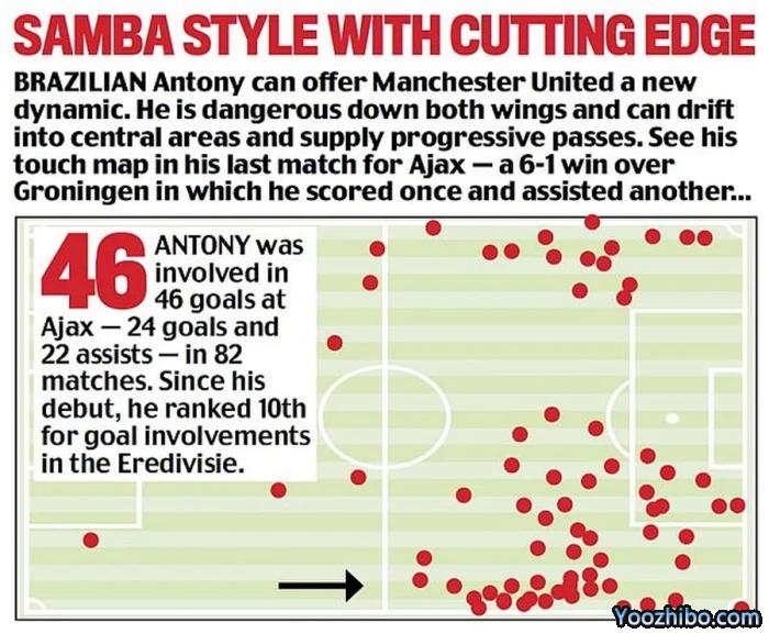 22岁的安东尼将会让曼联的右边锋位置拥有更多元化的战术选择,左脚内切的巴西边锋,加上右脚下底的桑乔或者安东尼·埃兰加,曼联有望彻底摆脱过去多年靠左路「一条腿走路」的毛病。