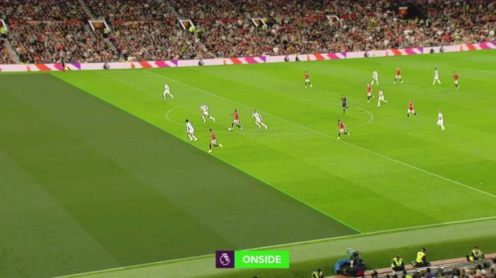 系统会自动判定球员是否越位,它闪现绿色就是不越位,红色则代表越位,这不是主观判断,而是机器判断。但去年夏天,英超和裁委会进行了规则调整,规定如果两条线重叠,哪怕进攻球员所在直线稍微靠前,也将判定不越位。就像拉什福德对利物浦的进球,这是为了增加进球。