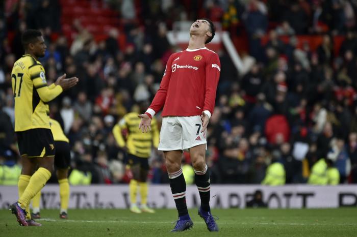 比赛结束时,C罗垂头丧气,他双手叉腰,站在球场上一动不动。随后曼联巨星摇着头,愤怒地朝草皮上吐了口唾沫。镜头转到费尔南德斯身上,他看起来和C罗一样困惑。能够容纳7.5万人的老特拉福德球场里,只有客队沃特福德的球迷兴高采烈。