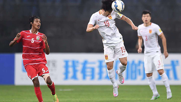 如果要向左边头球,身体先往右,然后用左前额向左边压球