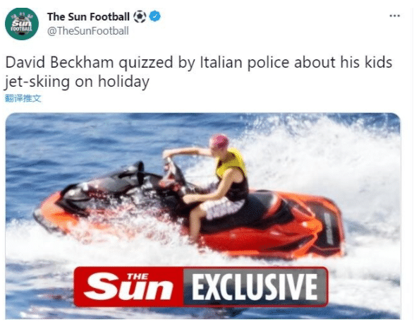 24直播网讯 《太阳报》消息,因为让未成年的儿子克鲁兹和女儿小七驾驶摩托艇,贝克汉姆被意大利警方问询。