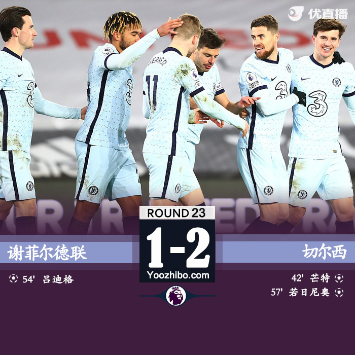 全场比赛结束,切尔西2-1击败谢菲尔德联。