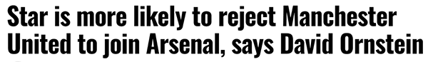 权威转会专家大卫·奥恩斯坦提醒曼联拥趸,不要寄予过高期望,因为谢什科更可能选择阿森纳,他们不仅能打欧冠,而且俱乐部更稳定。