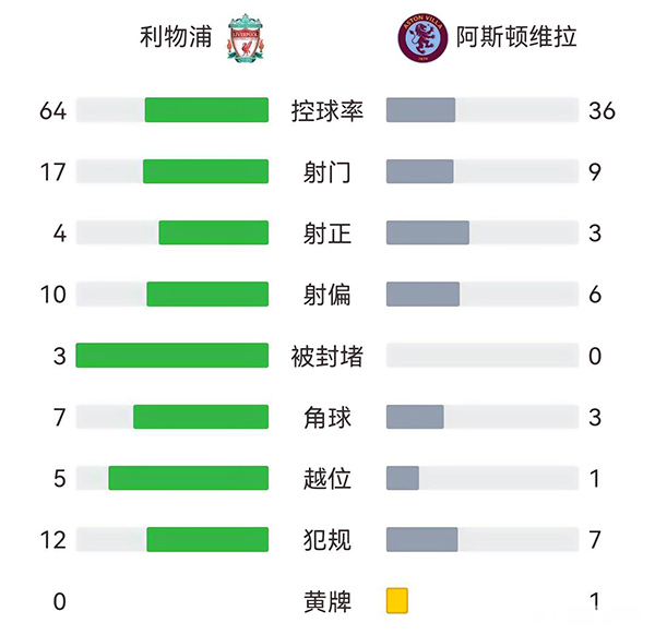全场比赛结束,利物浦3-0阿斯顿维拉。